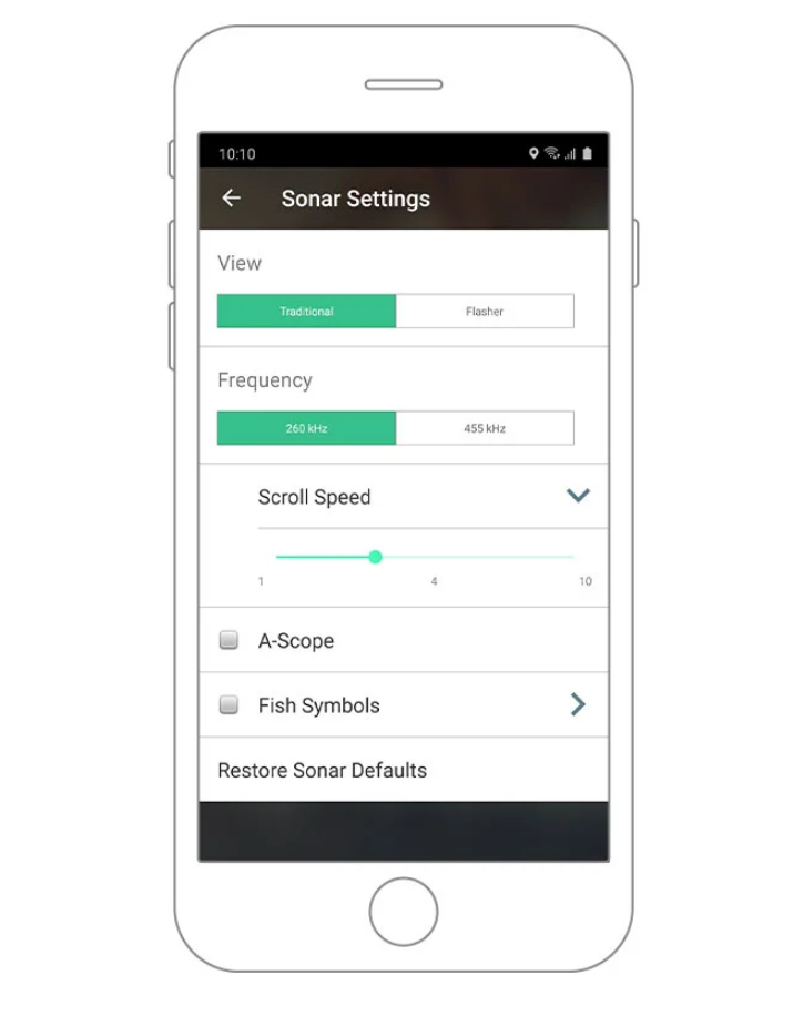 Alegeţi între modul de sonar 2-D, tradiţional şi uşor de interpretat şi cel cu semnal luminos pentru pescuit la copcă, cu ajustări ale setărilor pentru avans, rază şi multe altele.