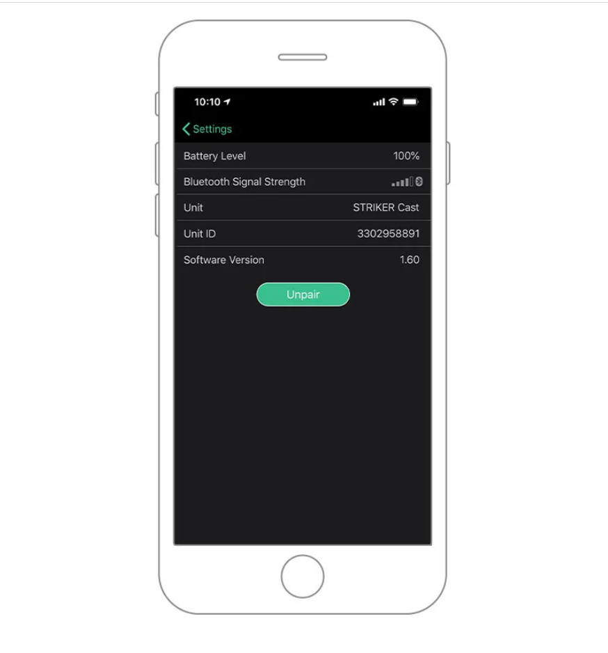 Dispozitivul STRIKER Cast uşor de utilizat transmite şi afişează imagini de sonar pe o interfaţă simplă de aplicaţie pentru telefon. Configurarea se realizează rapid. Iar imaginile scanate cu peşti şi locaţii cu structuri sunt uşor de interpretat.