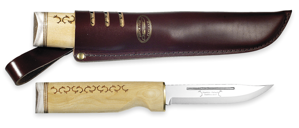 Mânerul Reindeer Explorer este din mesteacăn finlandez, curat, finisat cu un capac de corn de ren. Combinația mânerului special creat și a lamei tradiționale Lynx cu canelura de sânge oferă un cuțit cu multe caracteristici practice excelente pentru proprietar.