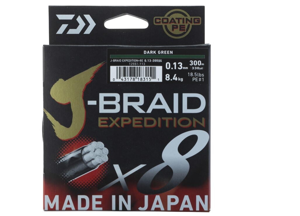 J-Braid a devenit și mai bun, odată cu introducerii modelului J-BRAID EXPEDITION. Având aceeași construcție realizată din fibră IZANAS care a făcut J-BRAID atât de popular, acum este îmbunătățită de tehnologia Daiwa Silicon „Coating PE” pentru a crea un textil mai moale, mai uniform, cu proprietăți hidrofobe, care crește durabilitatea și îmbunătățește sensivitatea.