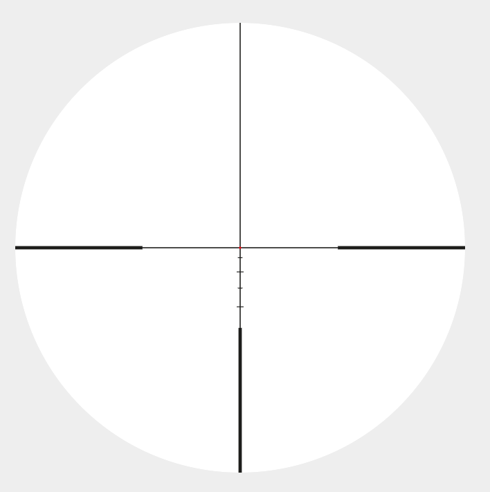 Spațiul dintre punctul luminat și firul gros măsoară 38cm atunci când se țintește la 100 de metri distanță și la o mărire de 18x.