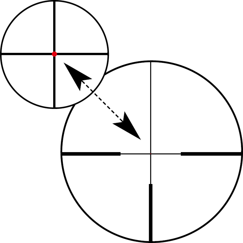 La cel mai mic factor de mărire, câmpul vizual este cel mai larg, permițând vânătorului să vadă mai mult împrejurimile. În general, un câmp vizual larg permite vizarea rapidă a țintei și oferă vânătorului cea mai mare vizibilitate a întregului mediu din jurul țintei.
