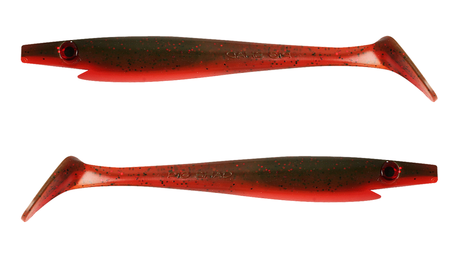Pig Shad Jr. este un shad moale din plastic inspirat după jerkbait clasic The Pig. Are o acțiune pe recuperare seducătoare de flanking. în timp ce coada asigură o bătaie cu frecvenţă scăzută. Imită perfct mişcarea unei momeli ţintă rănite ce se deplasează încet înainte cu ultimele ei puteri! Pig Shad are un profil unic şi este excelentă pentru a fi folosită cu jigg-uri recuperat încet peste zonele de mică adâncime.