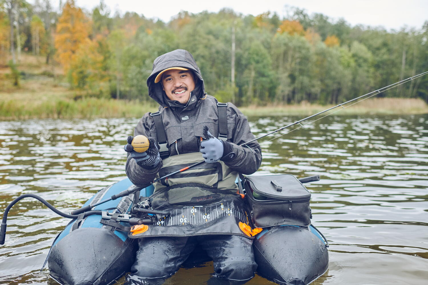 Barcă de pescuit - Ideal pentru bărci mici. Lansați sau cartografiați de pe ponton, barcă gonflabilă, barcă pneumatică sau barcă de tip belly-boat. Navigați la o viteză redusă de 3 km/h pentru măsurători precise ale sonarului sau lansați în locuri greu accesibile.