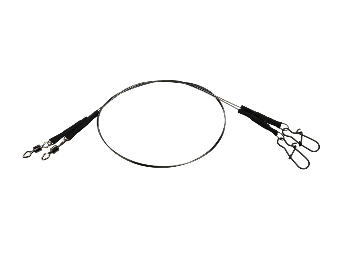 Strună din titan de înaltă calitate, ce nu se îndoaie, rezistentă de siguranță dublă sertizată, echipat cu vârtej EFFZETT Diamond Rolling de dimensiuni potrivite, de înaltă calitate și un EFFZETT D-Lock Snap. Manșoanele sertizate sunt acoperite cu tub termocontractabil negru.