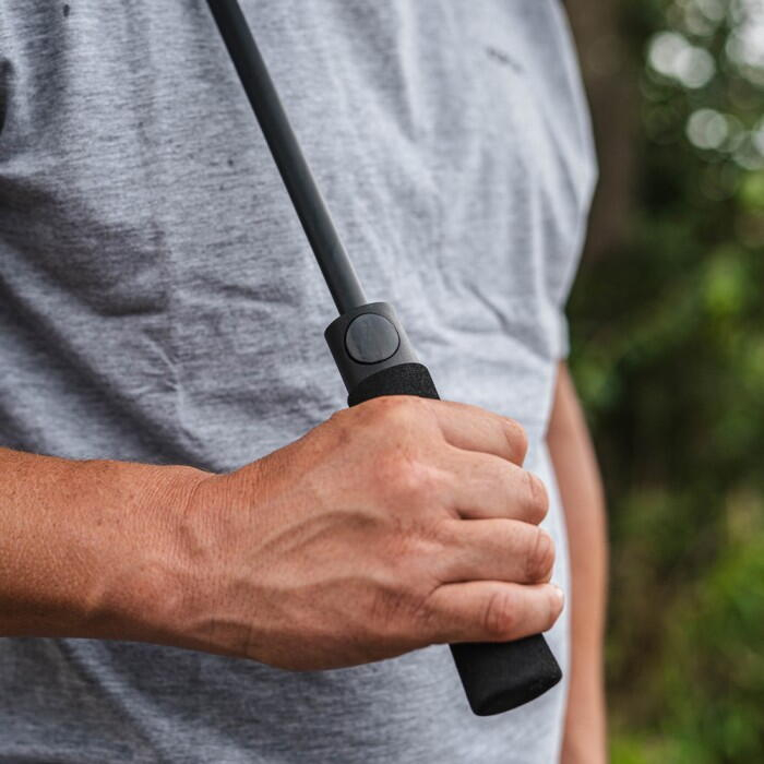 Umbrela Compac este companionul ideal pe malul apei atunci când ai nevoie de o pauză de la bivy. Fie că vrei să te ferești de ploaia persistentă sau de căldura intensă a soarelui, această umbrelă te protejează.