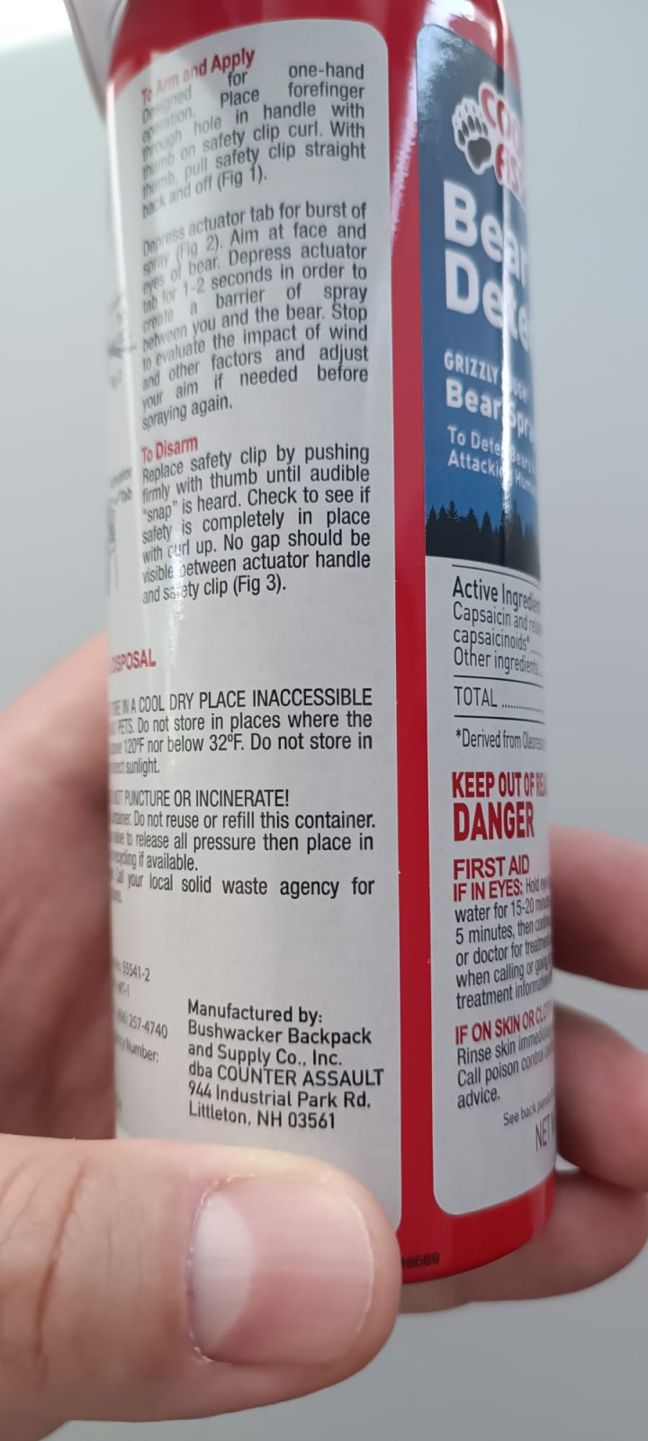 Sprayul Counter Assault Bear Deterrent este un dispozitiv de aparare eficient impotriva atacurilor de urs, avand o raza de actiune de pana la 10 metri.