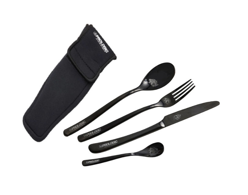 Setul de tacâmuri Prologic Blackfire este un set de tacâmuri elegante, cu cuțit, furculiță, lingură și linguriță. Un set de tacâmuri îngrijit, cu un design inspirat de pescuitul crapului, care se împachetează ușor și fără mizerie într-o geantă din neopren inclusă!