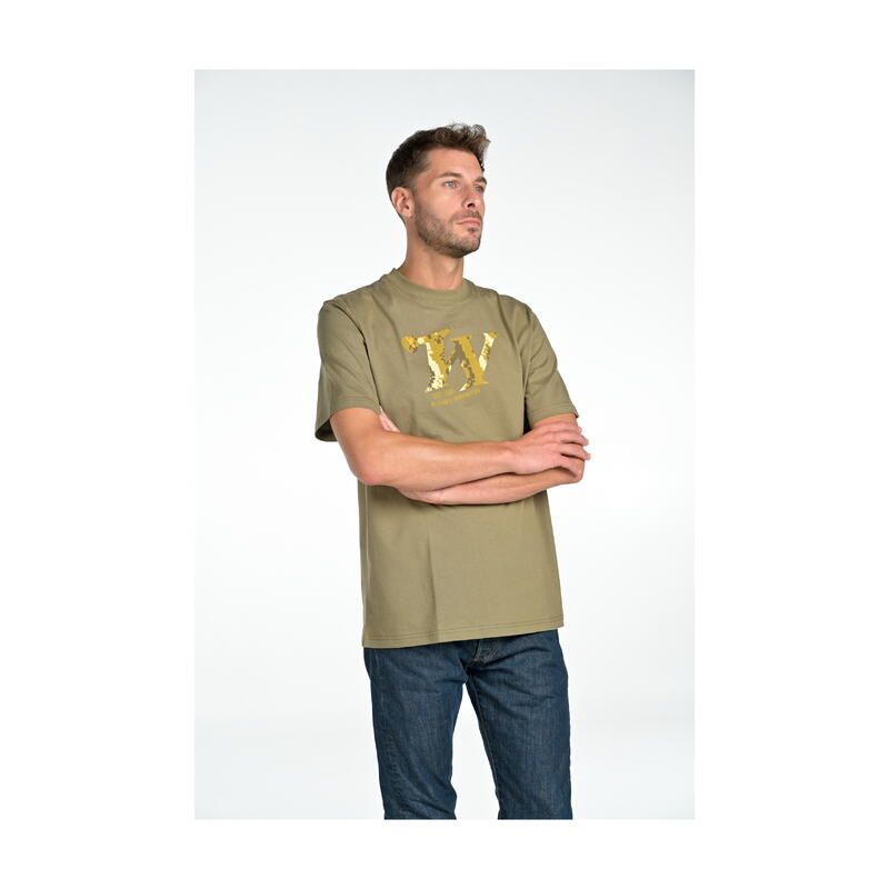 Tricou de culoare kaki, cu logo imprimat cu motivele pixel.