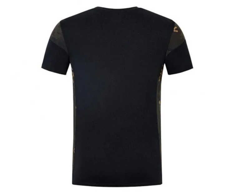 Tricoul Cut are segmente de kamo închis la culoare în partea de sus a fiecărei mâneci și pe părțile laterale ale cămășii. Modelul kamo închis este prezent pe mai multe articole de îmbrăcăminte, inclusiv hanorace, tricouri și pantaloni de jogging. Logo-ul Korda alb pe piept contrastează bine pe corpul principal negru jet al tricouului. Rezultatul este un tricou unic, elegant, pe care îl puteți purta oriunde.